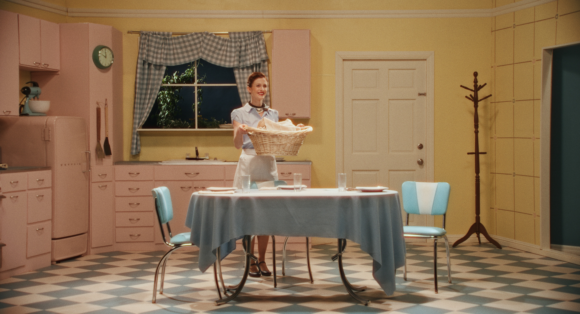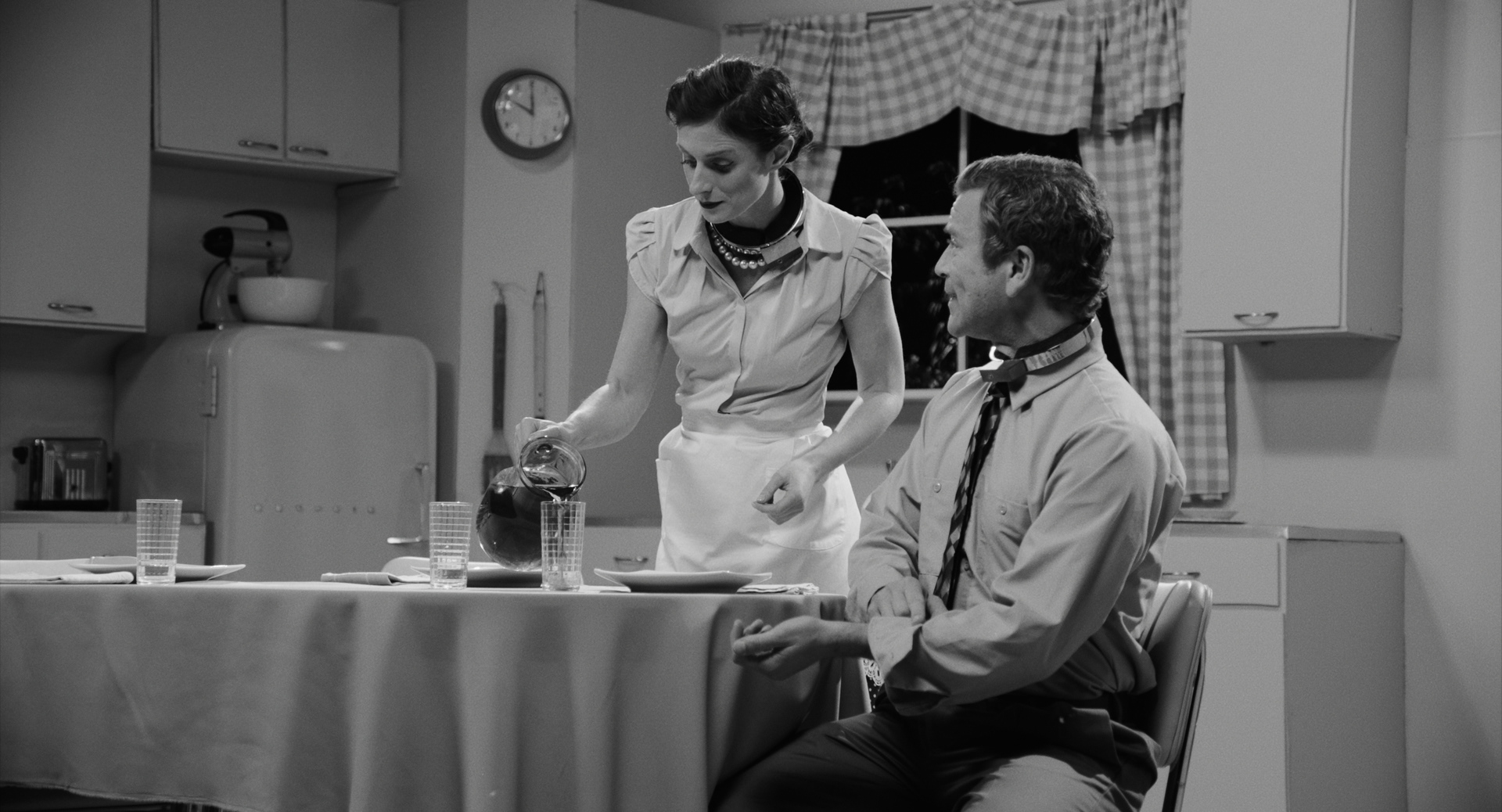 An actress experiences her first day on a 1950s sitcom that is controlled by an artificial intelligence.
